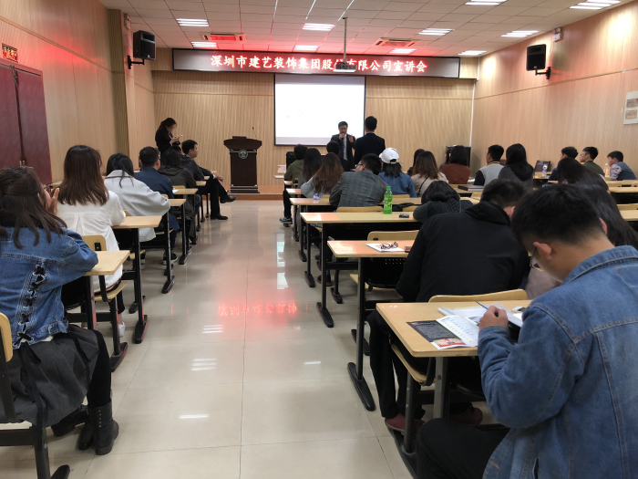 在宣講會現(xiàn)場,集團(tuán)副總裁趙紂瑜為學(xué)子們解讀了建筑裝飾行業(yè)現(xiàn)狀,宣導(dǎo)了建藝集團(tuán)發(fā)展戰(zhàn)略并描繪了集團(tuán)未來成長藍(lán)圖。接下來,人力資源部總經(jīng)理王久奎還就集團(tuán)發(fā)展歷程、業(yè)務(wù)模式、資質(zhì)榮譽(yù)、科技創(chuàng)新、人才培養(yǎng)體系、企業(yè)文化建設(shè)等內(nèi)容進(jìn)行了詳細(xì)介紹。