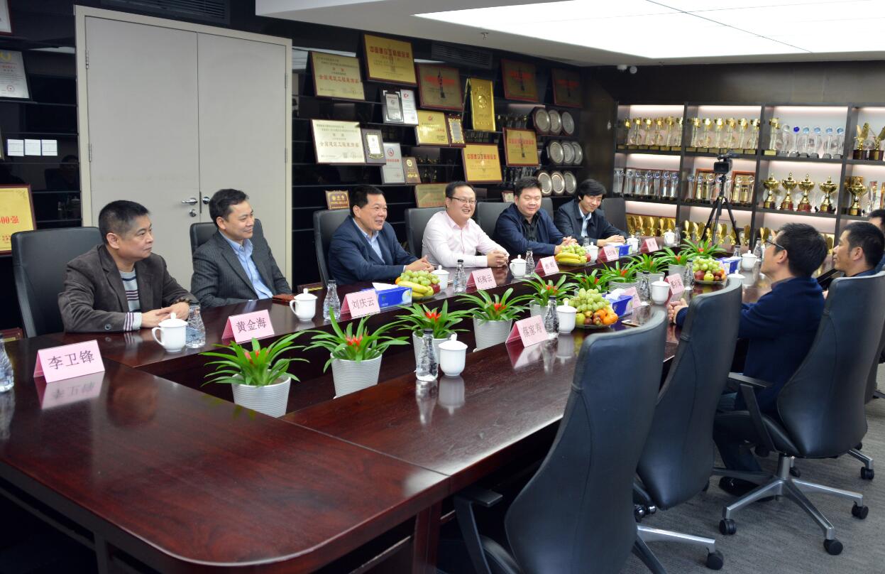 劉海云董事長(左三)向陳小杰總裁一行介紹集團(tuán)發(fā)展概況