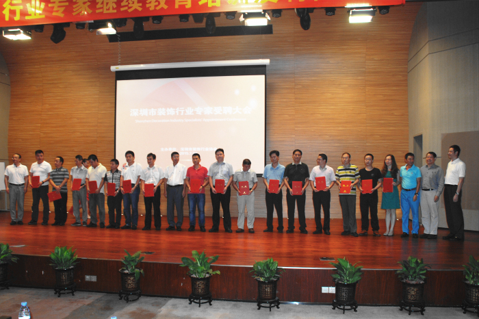會(huì)議期間宣布了“2015年度深圳市裝飾行業(yè)協(xié)會(huì)專家”名單,并由深圳市裝飾行業(yè)協(xié)會(huì)會(huì)長(zhǎng)高剛等領(lǐng)導(dǎo)給受聘專家現(xiàn)場(chǎng)頒發(fā)證書。建藝集團(tuán)董事長(zhǎng)劉海云、副總裁兼董事會(huì)秘書孫昀、副總裁劉慶云、行政管理中心總監(jiān)趙紂瑜以及阮民詩、李元耀、趙秀權(quán)、陳劍雄、李鵬鵬、曾正才等10人被聘為“2015年度深圳市裝飾行業(yè)協(xié)會(huì)專家”。此外,獲聘“2014年度深圳市裝飾行業(yè)協(xié)會(huì)專家”的建藝集團(tuán)常務(wù)副總裁田力、建藝集團(tuán)設(shè)計(jì)研究院院長(zhǎng)郭杰、營(yíng)銷管理中心總監(jiān)顏健昌、總工程師許凱華、工程總監(jiān)韓佛以及宋祥龍、李衛(wèi)鋒、熊順生、左超華等9人也同行參加“深圳市裝飾行業(yè)協(xié)會(huì)專家繼續(xù)教育培訓(xùn)”活動(dòng)。