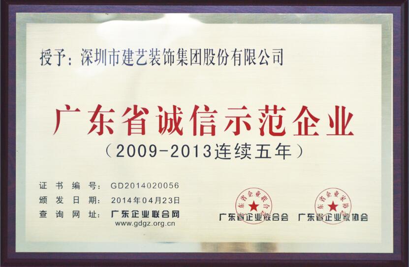 建藝集團榮獲的廣東省誠信示范企業(yè)榮譽獎牌