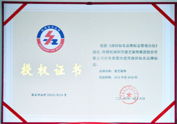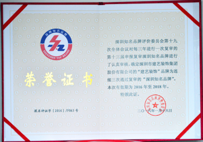 建藝集團(tuán)榮獲第十三屆深圳知名品牌“風(fēng)采獎(jiǎng)”