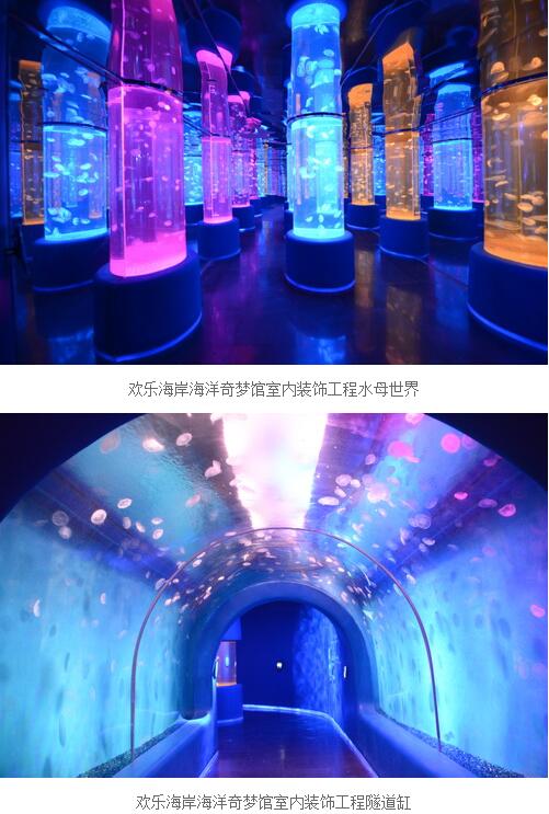 歡樂海岸位于深圳灣商圈核心,占地面積約125萬平方米,是集文化、生態(tài)、旅游、娛樂、購物、餐飲、酒店、會所等多元業(yè)態(tài)于一體的都市娛樂目的地,是深圳市致力打造的高品質人文旅游、國際創(chuàng)意生活空間中心。建藝集團承建了海洋奇夢館室內裝飾裝修以及水電、空調等施工內容。本工程天花和墻面全部采用異型GRG裝飾板,以滿足設計對造型的要求。地面鋪貼新型建筑板材——SRC增強玻璃纖維改良水泥板,電氣安裝則全部采用LED節(jié)能燈具,通過光與影的交錯,營造出如夢似幻的海底世界奇觀。