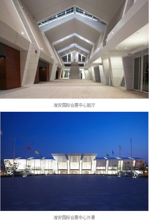 淮安國(guó)際會(huì)展中心位于江蘇省淮安市翔宇大道以西,越秀路以南的水渡口中央商務(wù)區(qū),是水渡口CBD板塊的核心區(qū)域,區(qū)位交通便利?;窗矅?guó)際會(huì)展中心以其國(guó)際風(fēng)格的建筑設(shè)計(jì)和先進(jìn)完善的功能分區(qū),成為淮安向外界展示城市快速發(fā)展及經(jīng)濟(jì)騰飛的標(biāo)志。本工程的設(shè)計(jì)單位——著名的德國(guó)GMP國(guó)際建筑設(shè)計(jì)有限責(zé)任公司秉承了德意志民族嚴(yán)謹(jǐn)和創(chuàng)新的特點(diǎn),提出了國(guó)內(nèi)裝飾界很少采用甚至是國(guó)內(nèi)首創(chuàng)的施工要求?;窗矅?guó)際會(huì)展中心的建筑風(fēng)格簡(jiǎn)潔、統(tǒng)一、真實(shí),展示了一種嚴(yán)謹(jǐn)?shù)膶儆诘聡?guó)的理性主義設(shè)計(jì)風(fēng)格,所有設(shè)計(jì)完全服從于功能、美學(xué)和精神的需要。在呈現(xiàn)整體簡(jiǎn)潔的同時(shí),細(xì)部構(gòu)造和材料的運(yùn)用也體現(xiàn)了德國(guó)特有的機(jī)械、細(xì)膩和精致。GMP更注重體現(xiàn)會(huì)展中心建筑本身的結(jié)構(gòu)美,一種源于建筑本身的真實(shí)的結(jié)構(gòu)力學(xué),大跨度鋼結(jié)構(gòu)的結(jié)構(gòu)魅力。