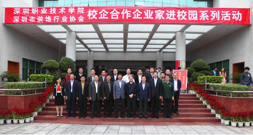 11月的深圳秋意漸濃,13日,備受關(guān)注的“深圳職業(yè)技術(shù)學(xué)院-深圳市裝飾行業(yè)協(xié)會(huì)校企合作企業(yè)家進(jìn)校園”大型活動(dòng),在寬敞明亮的深圳職業(yè)技術(shù)學(xué)院西麗湖校區(qū)圖書(shū)館西報(bào)告廳隆重舉行。作為本次活動(dòng)的重要嘉賓,同時(shí)也是首批受聘客座教授人選,深圳市建藝裝飾集團(tuán)股份有限公司董事長(zhǎng)、深圳市裝飾行業(yè)協(xié)會(huì)副會(huì)長(zhǎng)劉海云,深圳市建藝裝飾集團(tuán)股份有限公司副總裁孫昀以及集團(tuán)行政管理中心總監(jiān)趙紂瑜等領(lǐng)導(dǎo)應(yīng)邀出席了本次活動(dòng)。出席本次活動(dòng)的嘉賓還有深圳裝飾行業(yè)協(xié)會(huì)會(huì)長(zhǎng)高剛,總工程師王彥波及深圳市裝飾行業(yè)協(xié)會(huì)其他12家會(huì)員單位的14位董事長(zhǎng)、總經(jīng)理與高管人員。