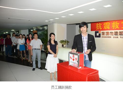 在捐款儀式上,劉海云董事長(zhǎng)走到募捐箱前,個(gè)人向?yàn)?zāi)區(qū)捐款一萬(wàn)元,同時(shí)也號(hào)召每一位建藝員工為災(zāi)區(qū)同胞捐款,希望能夠起到聚沙成塔的效用,真正對(duì)雅安災(zāi)區(qū)的重建進(jìn)獻(xiàn)綿薄之力。集團(tuán)全體員工紛紛解囊,獻(xiàn)出自己的一份愛心,在項(xiàng)目及外地出差的建藝人,在得知總部舉行抗震救災(zāi)捐款活動(dòng)之后,主動(dòng)要求同事幫忙代捐,表達(dá)建藝人對(duì)災(zāi)區(qū)的一份真情。