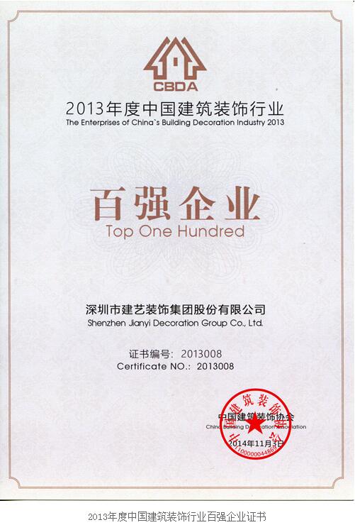 建藝集團(tuán)榮獲“2013年度中國建筑裝飾行業(yè)百強(qiáng)企業(yè)”第八名