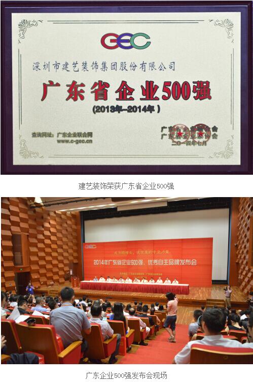 建藝集團(tuán)榮膺“2014年廣東省企業(yè)五百?gòu)?qiáng)”