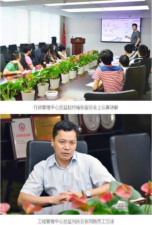 鑒于此,本著系統(tǒng)了解新員工對(duì)目前工作環(huán)境和工作崗位的適應(yīng)情況,幫助新員工加深對(duì)公司企業(yè)文化的理解,培養(yǎng)新員工擁有良好的工作心態(tài)和職業(yè)素養(yǎng)這一初衷,6月13日,集團(tuán)行政管理中心在會(huì)議室專門(mén)舉辦了“2014年新員工座談會(huì)”。本次座談會(huì)由行政管理中心總監(jiān)趙紂瑜主持主講,工程管理中心總監(jiān)劉慶云及人力資源部副總經(jīng)理張維作為特邀“嘉賓”共同參加了本次座談會(huì),并在會(huì)上與2014年入職的集團(tuán)總部新員工一同進(jìn)行了深入交流與探討。