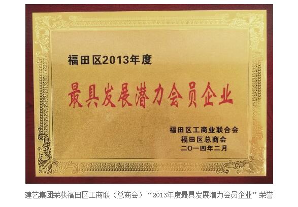 建藝集團(tuán)喜獲福田區(qū)工商聯(lián)(總商會)“2013年度最具發(fā)展?jié)摿T企業(yè)”榮譽(yù)